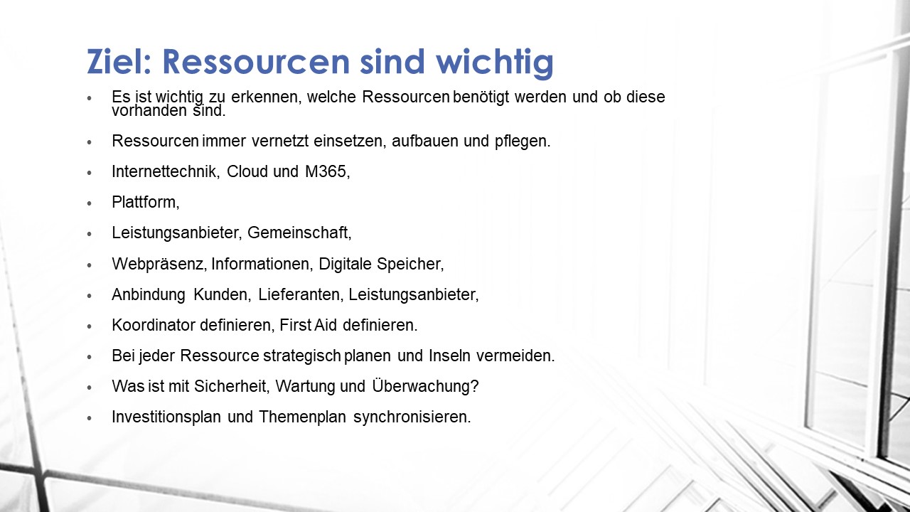 Es ist wichtig zu erkennen, welche Ressourcen benötigt werden und ob diese vorhanden sind.